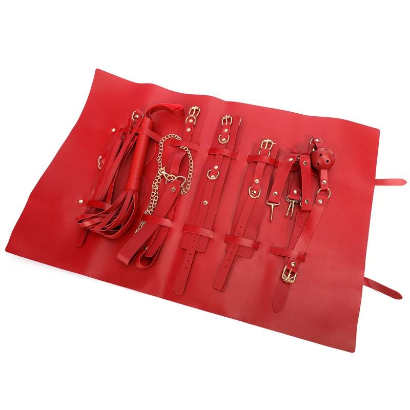 Este es el kit perfecto tanto si quieres empezar en el mundo del BDSM como si quieres aumentar tu colección. Cuenta con una bolsita para guardar cómoda y fácilmente los componentes del kit, el cual está compuesto de 8 accesorios indispensables en el mundo del BDSM, todos ellos en un tono rojo súper erótico.