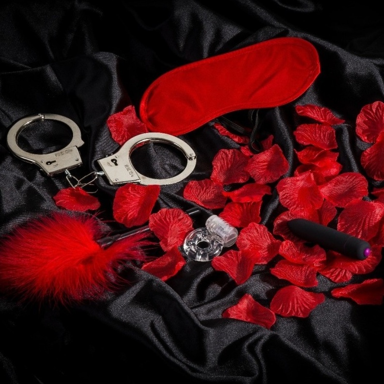 Elegante kit para adentrarte con tu pareja en un mundo de sensaciones. Plantea un escenario con los lujosos pétalos de rosa de tela roja en tu cama o en tu bañera, acompaña las vibraciones del anillo retando a tu pareja a vendarse los ojos o a atarse en la cama. Las vibraciones de la bala de uso externo y las suaves plumas harán de todo el momento una experiencia única.